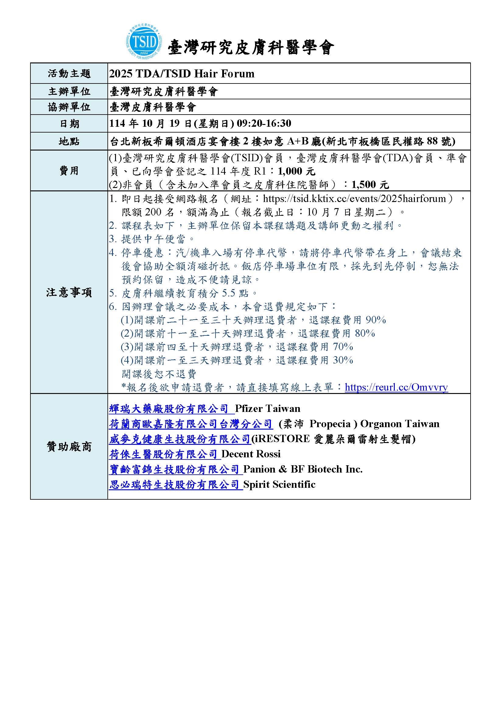 請事先報名,線上報名及付款網址:https://tsid.kktix.cc/events/2025hairforum