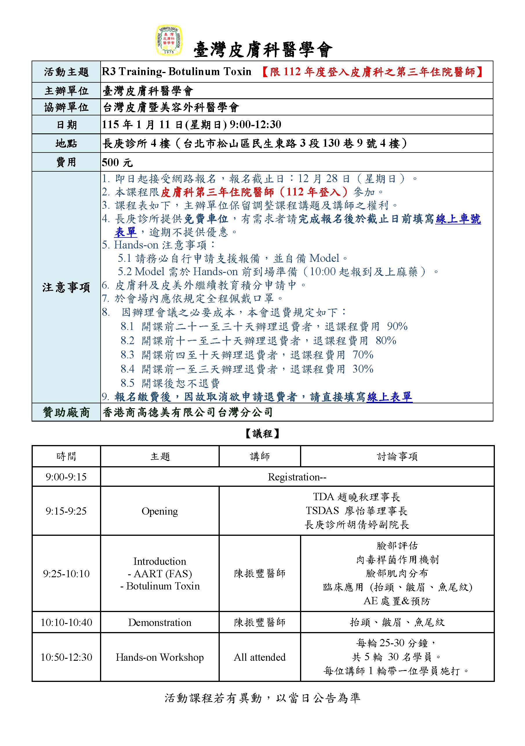 R3 Training-Toxin 【限112年度登入皮膚科之第三年住院醫師】
