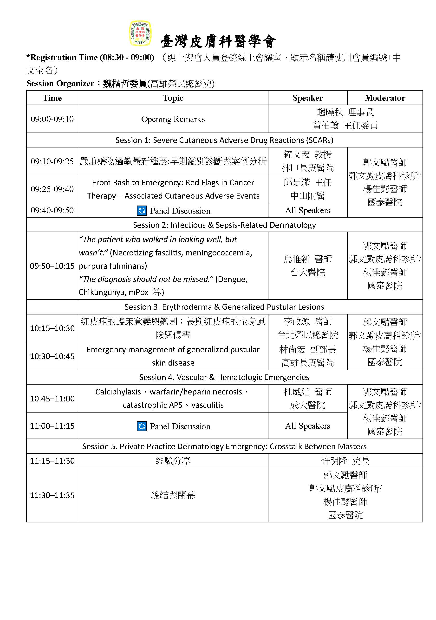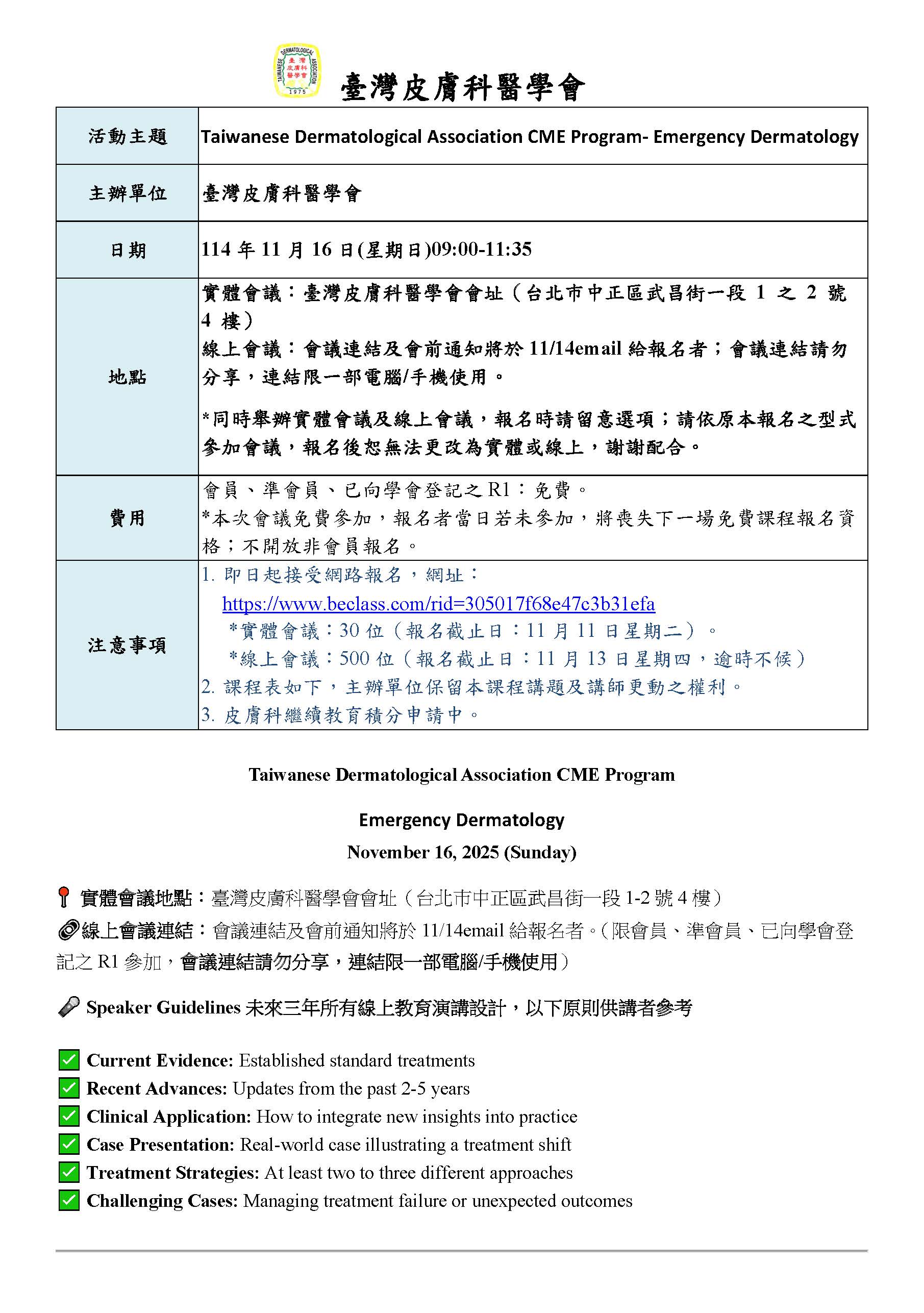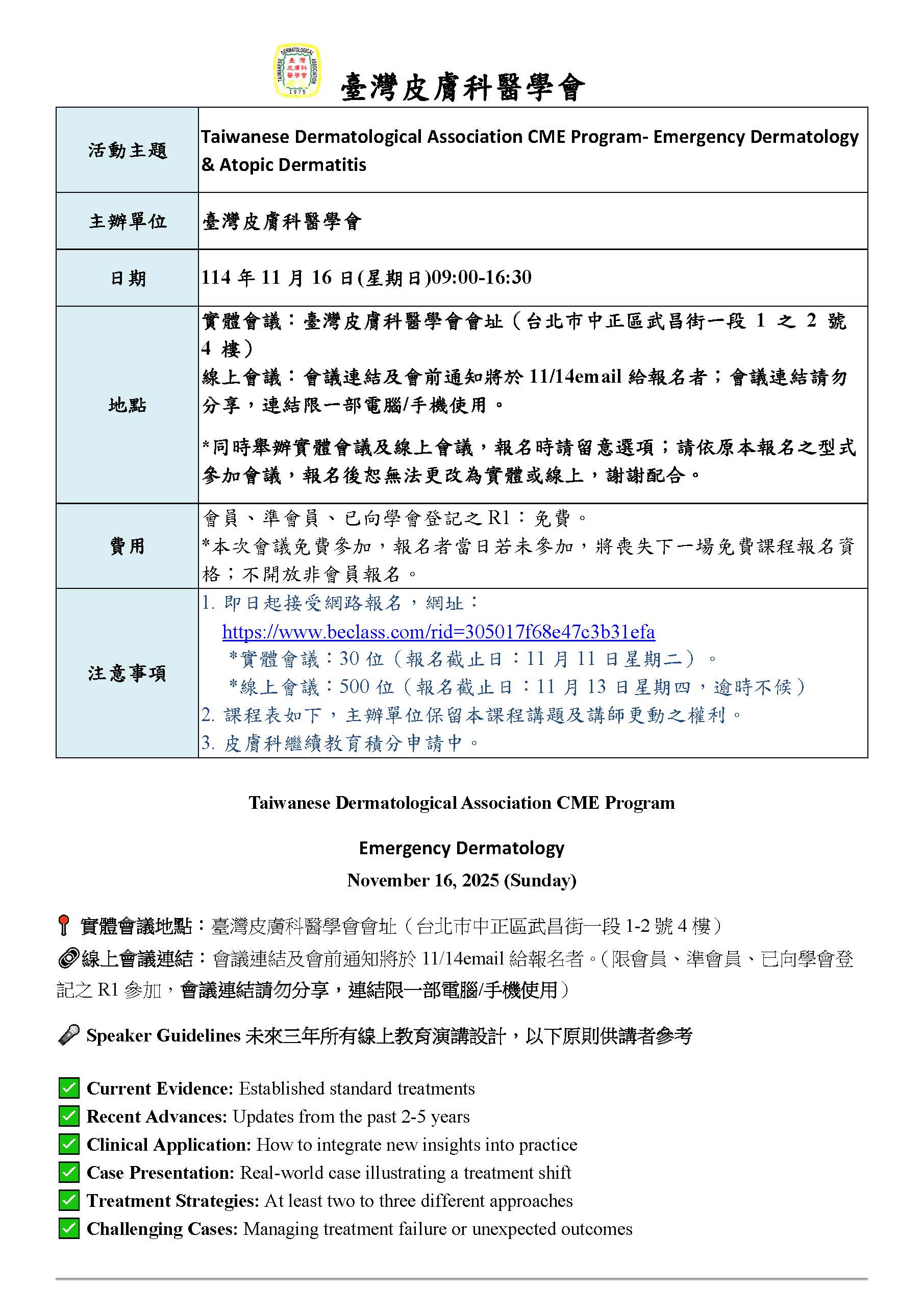 Taiwanese Dermatological Association CME Program- Emergency Dermatology& Atopic Dermatitis