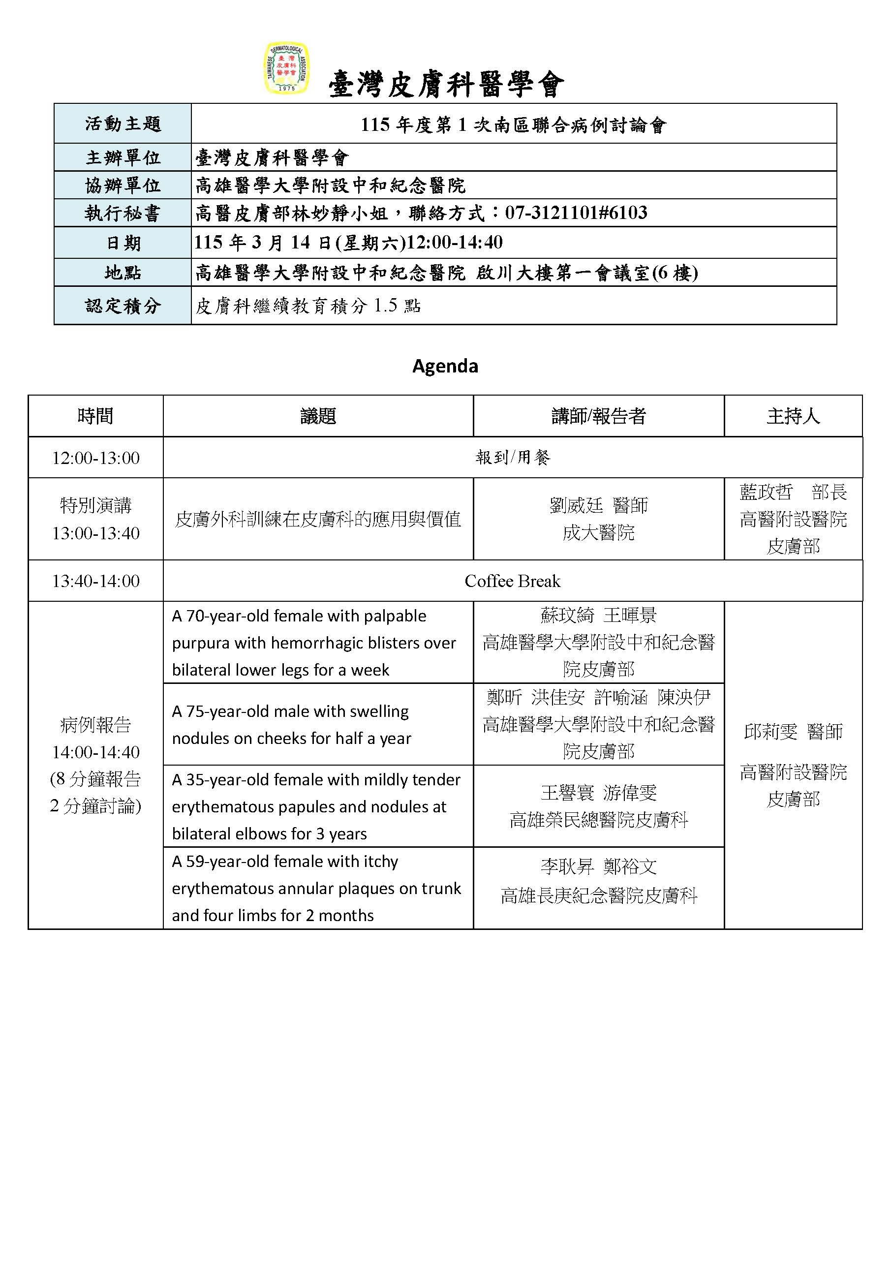 臺灣皮膚科醫學會、高雄醫學大學附設中和紀念醫院