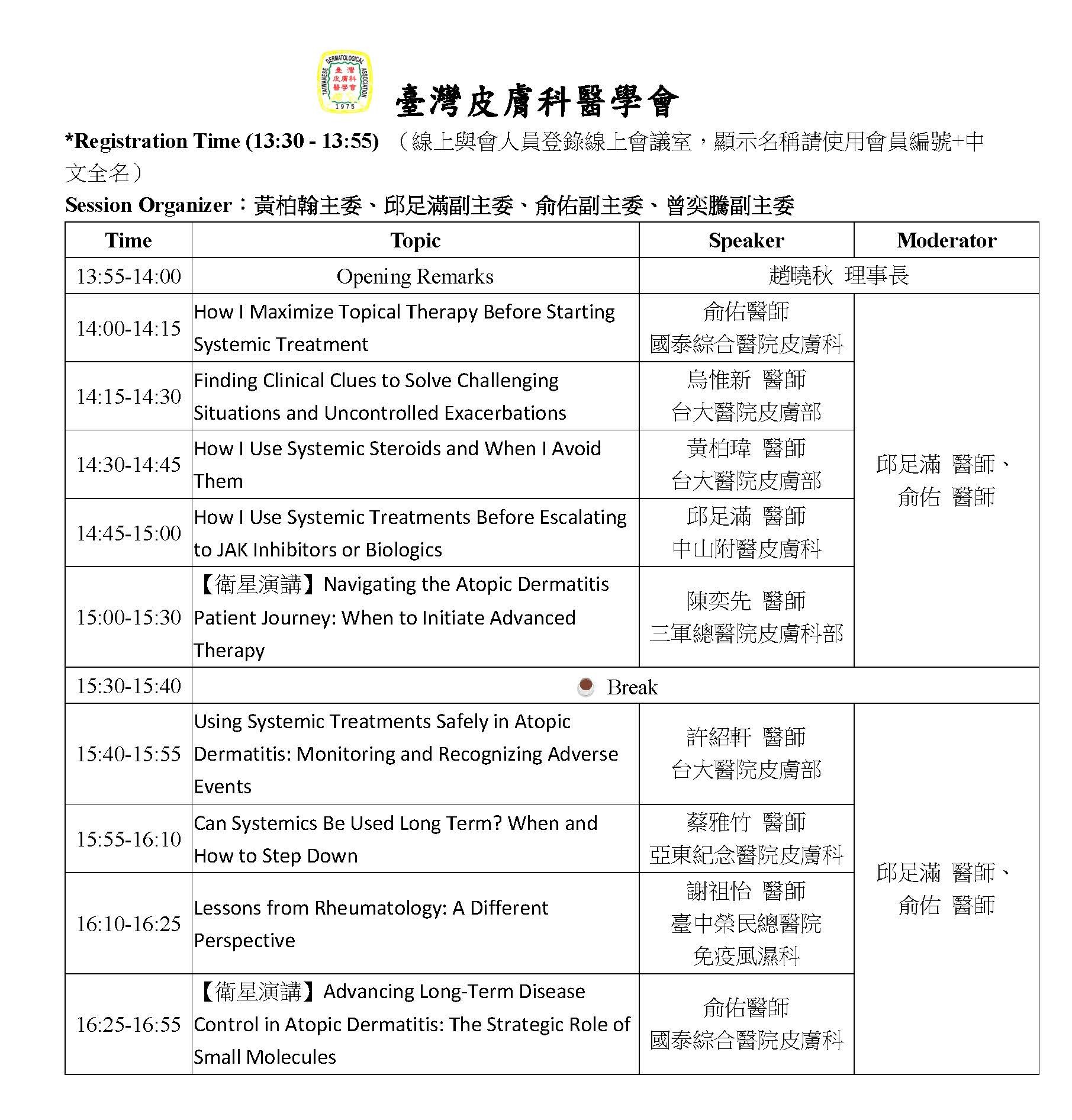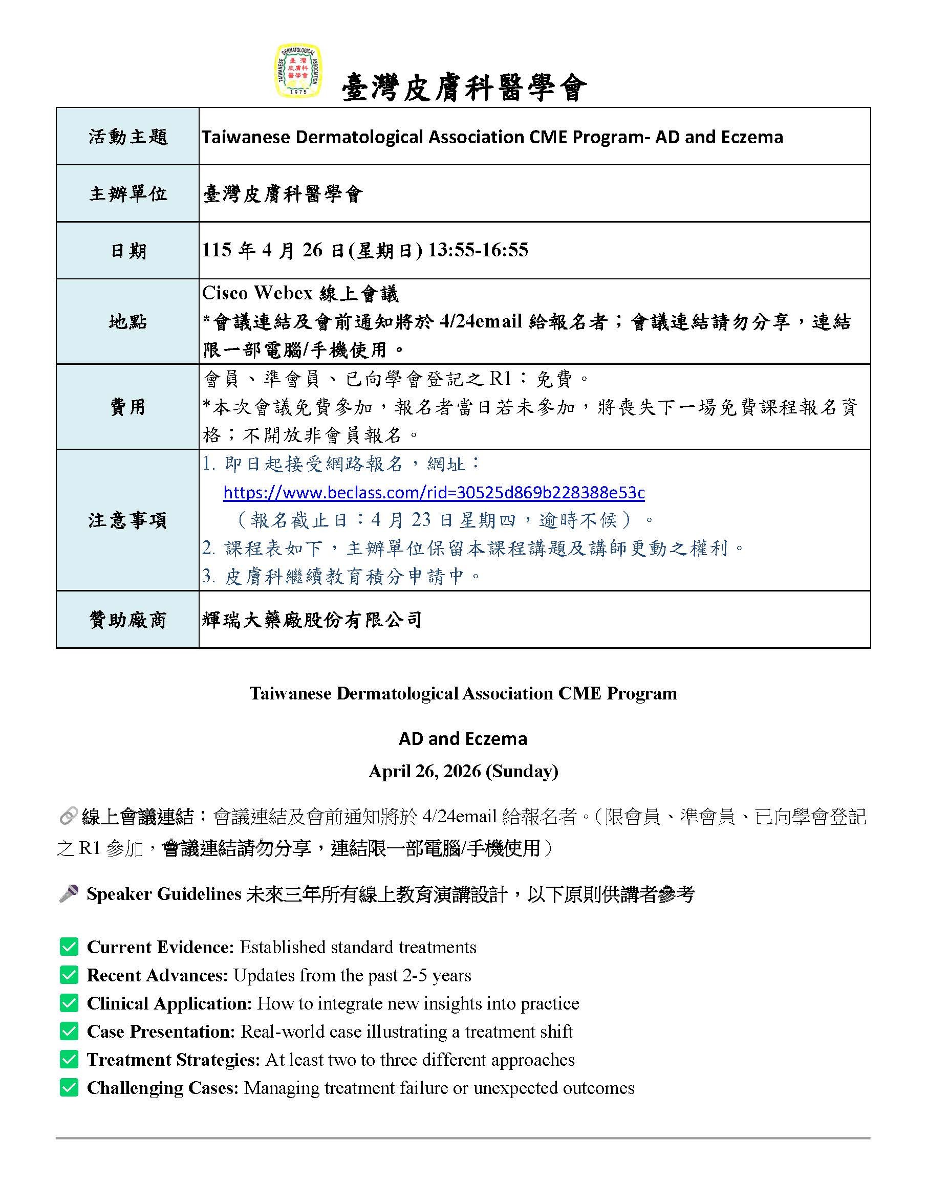 Taiwanese Dermatological Association CME Program- AD and Eczema